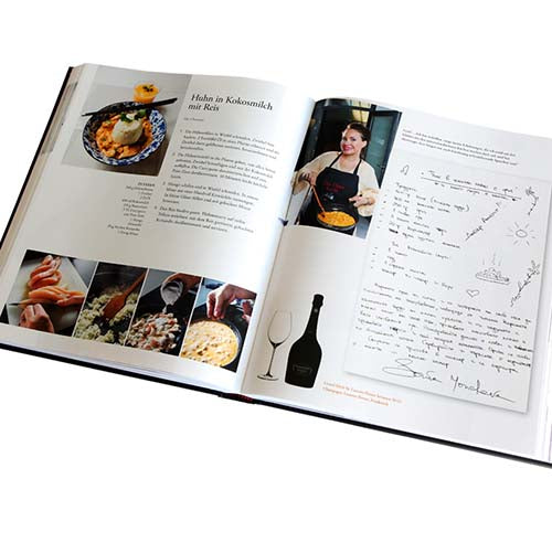 Herausgekommen ist ein Kochbuch mit mehr als 700 Fotos, 70 persönlichen, handgeschriebenen Rezeptanleitungen in der Muttersprache der Opernstars, mit Antworten auf ihre Essgewohnheiten und Küchengeheimnisse, humorvollen Kochportraits, Fotos beim freudigen Zubereiten und den Weinempfehlungen der weltbesten Weinbauern zu jedem der Künstlerrezepte.